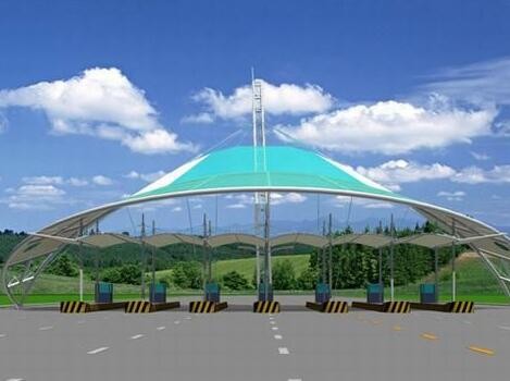 交通膜結(jié)構(gòu)具有良好的環(huán)保性、透光性、自清潔性,膜材表面采用PVDF(聚偏二氟乙烯)涂層、或二氧化鈦涂層,具有較好的隔熱效果,對太陽熱能可反射掉70%,膜材本身吸收了17%,傳熱13%,而透光率卻在20%以上,經(jīng)過長時間的直接照射,其輝度仍能保留很多。